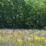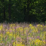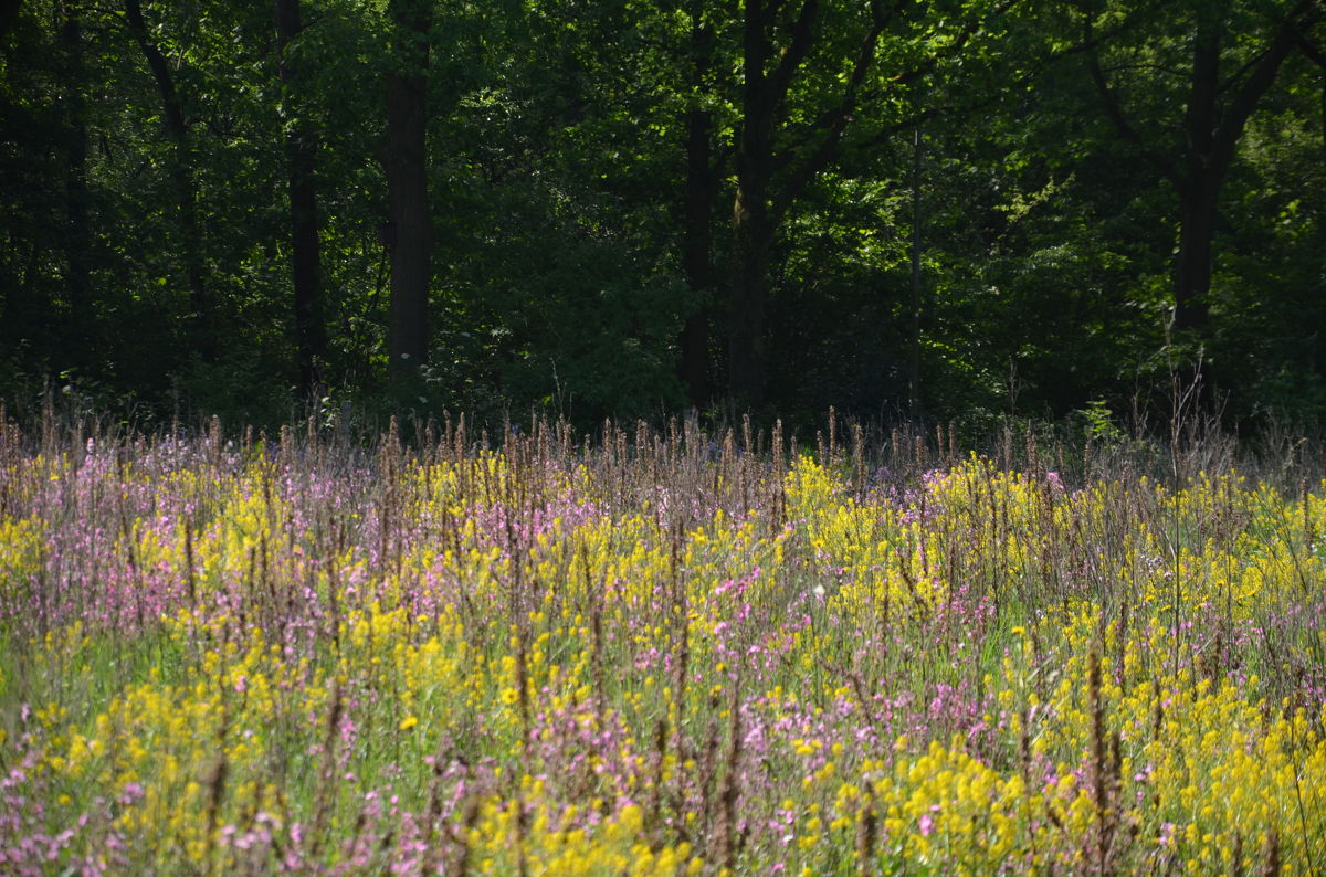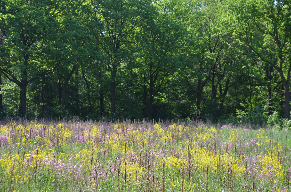 Aan de Oude Baan Oost zijn vorig jaar de paardeweides ingezaaid met bloemen en graan. De weide is dit voorjaar in bloei en ziet er prachtig uit.