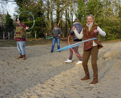 Sinds kort heeft Angélica het initiatief genomen om twee maal in de week op de zandverstuiving te hoelahoepen. Enthousiast begonnen op de zandverstuiving voor Heiweg nr 25. Meedoen kan op woensdag om 15.00 uur of om zaterdag om 15.00 uur.