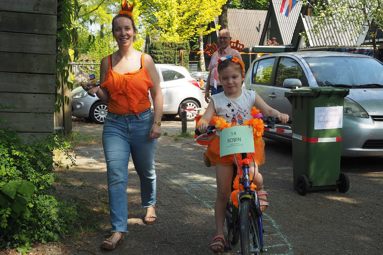 Wie wil er nu niet tijdens koningsdag meedoen met een kinderfietsparcours? Zeker de kinderen van Tielekeshoeven. Hun enthousiaste ouders hebben een parcours uitgezet met gekleurde linten tussen de woningen en in de achtertuinen.