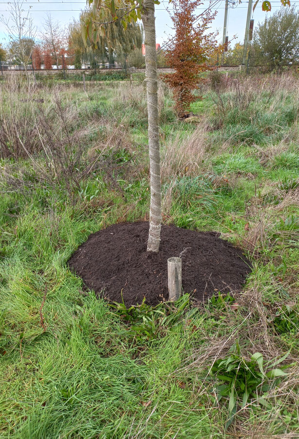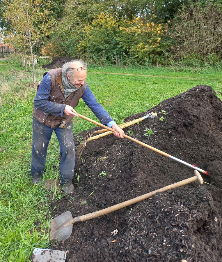 Vrijwilligers hebben begin november onderhoud aan het bos op zich genomen. Alle bomen zijn voorzien van een nieuwe laag compost aan de voet. Een gezellige en belangrijke klus met allen.