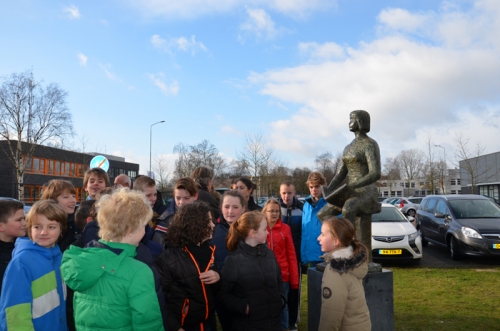 Op 29 januari jl is het standbeeld lezend meisje onthuld door Lotte Diebels. De hele klas was erbij