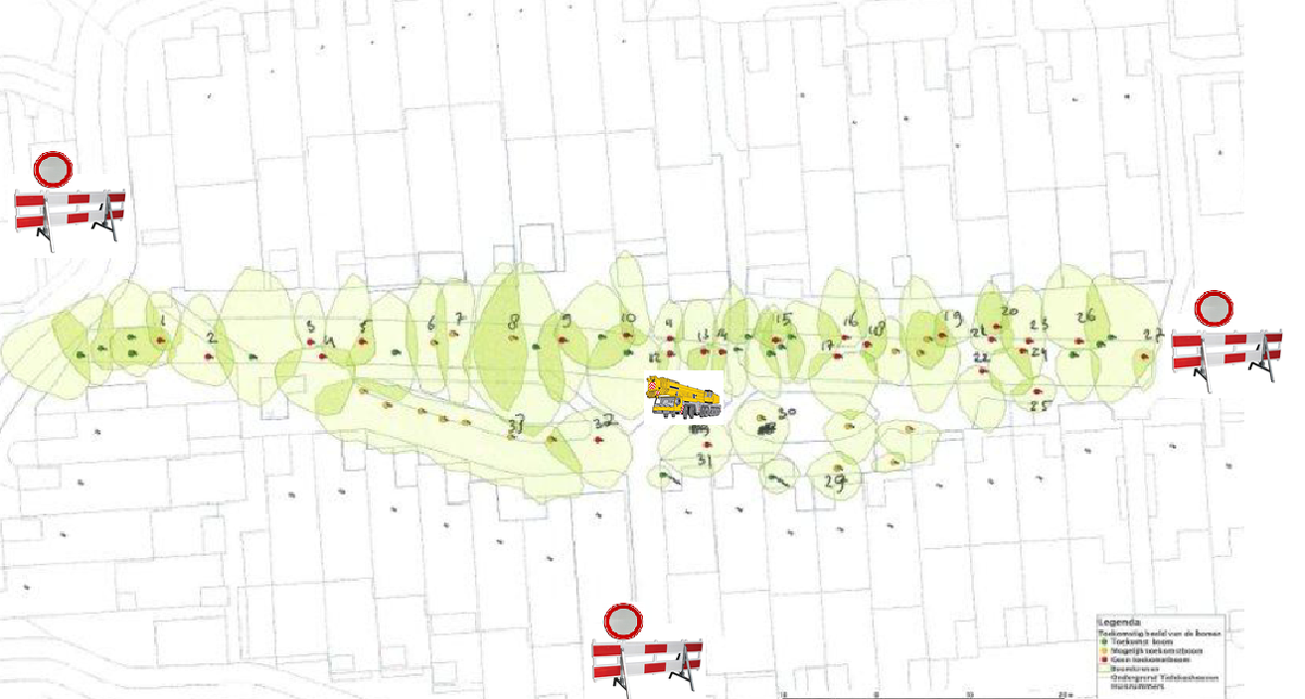 Foto: bespreken van het plan voor snoeien deel van de bomen in Perron 3