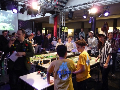 Onder de naam 'Flush Attack' heeft het team zich gebogen over dit probleem. Medewerkers van de gemeente, Laurens Brouwer en Sander Tax, hebben het team geïnformeerd over de vitaliseringsplannen van de wijk en hen op goede informatiebronnen gewezen. Al het onderzoek leidde uiteindelijk tot de 'klemklep' als oplossing. Het is een klep die maar een kant op kan en het water kan dus niet naar boven. "De mensen kunnen de klemklep zelf plaatsen dus het is een goedkope en gemakkelijke oplossing. Je moet hem wel samen gebruiken met de afkoppelbeluchter anders krijg je problemen met de luchtdruk", legt het team uit. De jury van FLL was streng maar vonden het een goed idee! Ze werden helaas geen eerste maar wonnen wel de 'inspiratieaward' voor enthousiasme, prestatie en samenwerking met anderen teams. "We zijn heel blij met de prijzen. Ook was het erg leuk en leerzaam om met de gemeente en de wijkraad samen te werken!", zegt het team enthouasist. Het team mag hun project ook presenteren op een informatiebijeenkomst van de gemeente voor wijkbewoners.