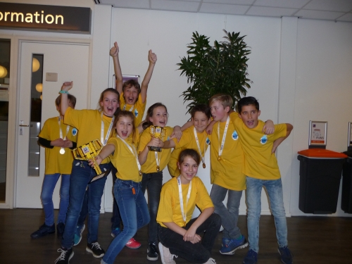 Newtonkids 7/8 : Josje, Neeltje, Max, Floris, Auke, Pleun, Ellen, Levi & Quinn deden onder begeleiding van coach en leerkracht Marieke Baten mee met de FLL van dit jaar.
